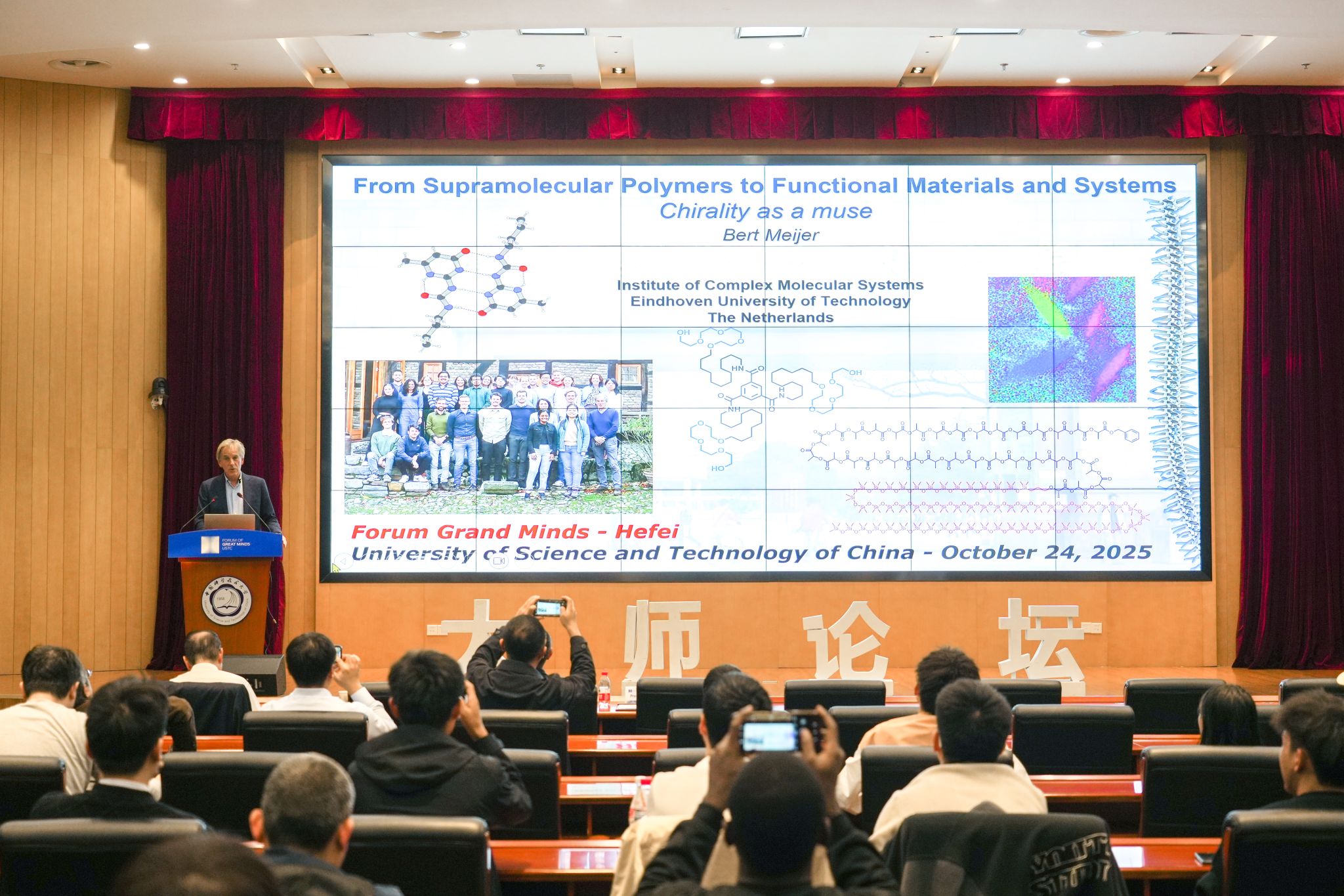 10月24日,国际著名超分子化学家、荷兰皇家科学院院士Bert Meijer教授应邀访问我校并做客中国科大“大师论坛”,在物质科研楼三楼报告厅作题为《从超分子聚合物到功能材料与手性体系》的精彩学术报告。化学与材料科学学院执行院长刘世勇主持报告会并致辞,国际合作与交流部副部长王晨向嘉宾颁发纪念证书。