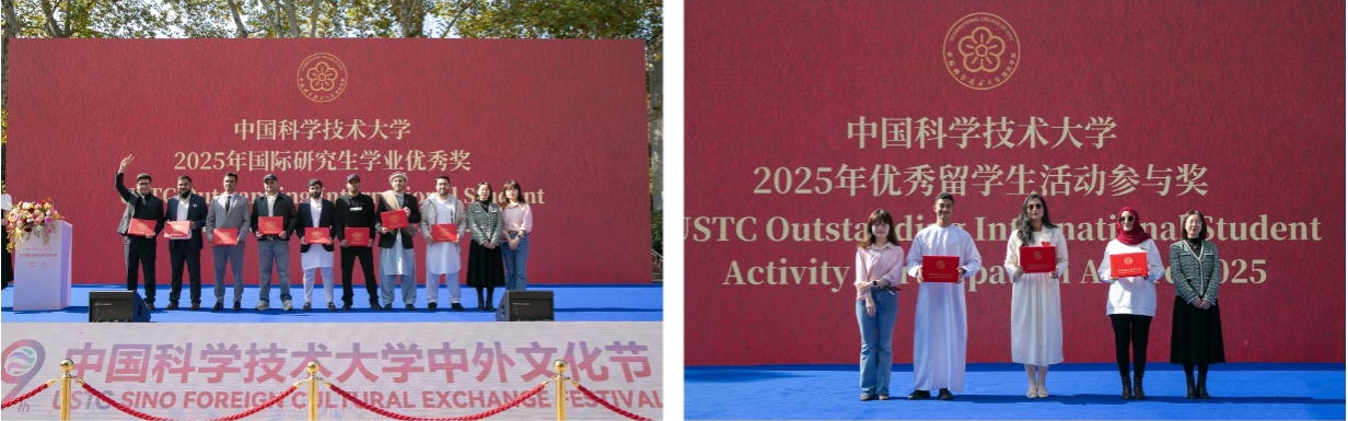 开幕仪式上,四位主持人以热情开场点燃全场气氛。国际合作与交流部副部长沈义竹在开幕致辞中指出,中外文化节是“世界村”理念的生动实践,既为中外学子搭建了平等对话、深度沟通的桥梁,更彰显了科大多元包容、开放共赢的校园精神。随后,沈义竹为学业优秀奖及活动参与奖的获奖国际学生颁发荣誉证书,表彰他们在学术探索与校园文化建设中的突出表现。