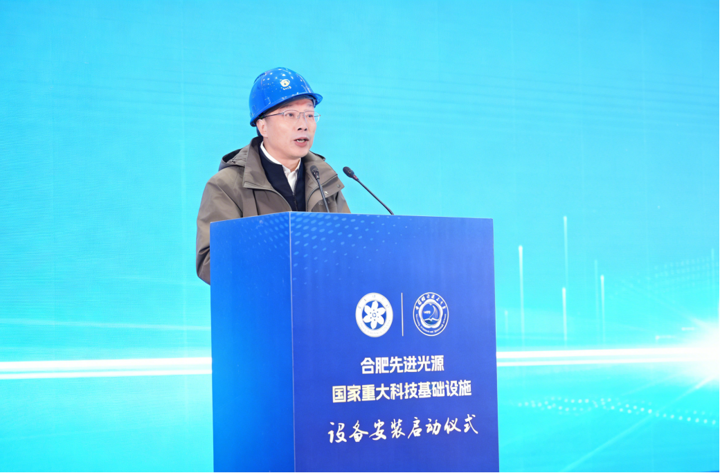 上午9时,仪式在热烈的气氛中正式开始。中国科学技术大学校长常进院士发表致辞,他指出合肥先进光源是国家同步辐射实验室历经十余年酝酿筹备、四年预研攻关的心血结晶,承载着我校几代“追光人”为国铸器、勇攀高峰的初心与梦想。当前距项目竣工已不足一千天,时间紧迫、任务艰巨。他对工程团队提出三点希望:一是拿出只争朝夕的干劲,科学制定计划,高效有序推进;二是发扬科大人的务实严谨,以“钉钉子精神”抓好每一项安装任务,严把质量关、安全关、技术关;三是展现大科学装置建设国家队的担当,注重经验总结与技术创新,边建设、边产出,让这束“国之重器”的光芒早日照亮科技创新前沿。