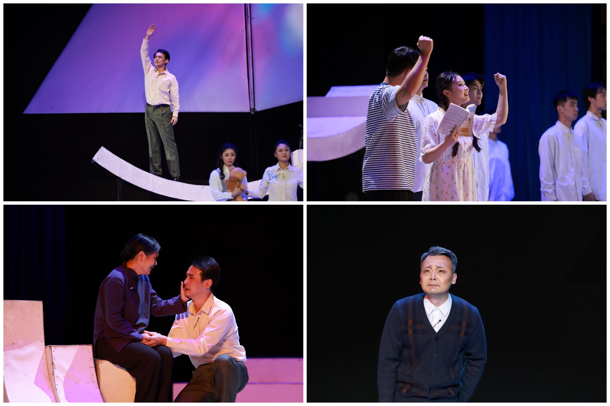 此次展演的原创话剧《抉择》打破传统线性叙事框架,以杨振宁、许鹿希、邓志典等重要人物的回忆为叙事支点,围绕“两弹元勋”邓稼先的奋斗人生,构建起多维交织的戏剧空间。剧中通过邓稼先与杨振宁跨越时空的深厚情谊、工程兵刘春光的英勇奉献、国际友人寒春对原子弹的深刻反思,以及亲人之间的细腻情感,串联起一段段感人至深的家国故事。这一叙事结构不仅艺术化地呈现了科技工作者在人生关键节点的毅然抉择,更将他们隐姓埋名、以身许国的崇高精神与鲜活真实的情感世界融为一体,实现了历史真实与艺术表达的有机统一。