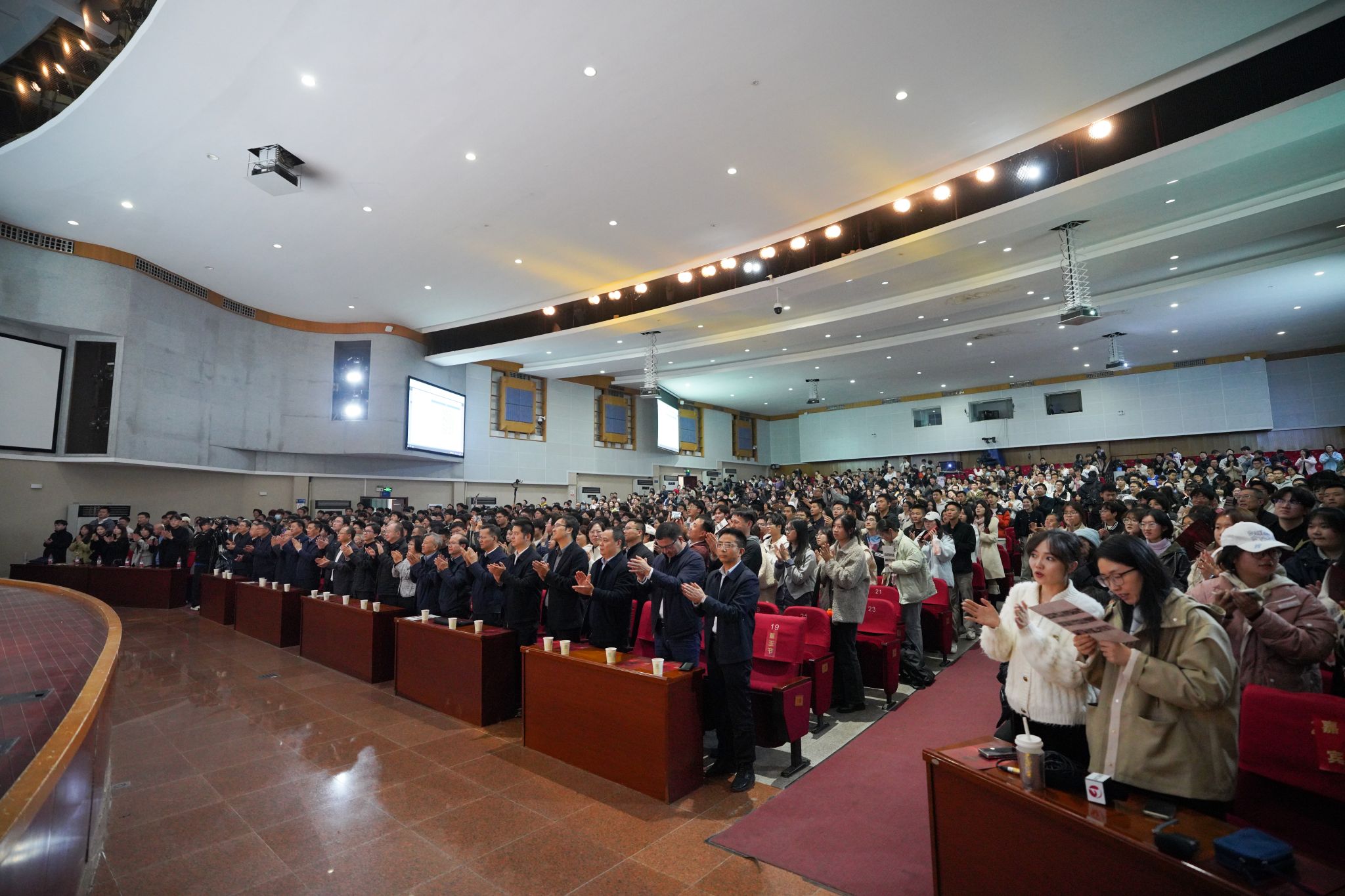 11月24日晚,由安徽省委教育工委、省教育厅主办,中国科学技术大学、安徽艺术学院承办的2025年全省高校校园原创文化精品专场展演——原创话剧《抉择》在东区大礼堂精彩上演。安徽省委教育工委书记、省教育厅厅长钱桂仑,校党委常委、副校长汪毓明,校党委常委、党委宣传部部长王伟,省直有关单位、部分在肥高校负责人及师生代表近1300人现场观摩。