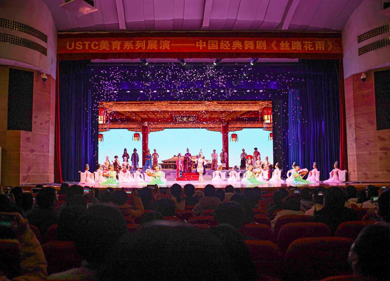 12月9日晚,甘肃省歌舞剧院携中国经典舞剧《丝路花雨》在中国科学技术大学东区大礼堂震撼上演。现场座无虚席,千余名师生共同奔赴一场穿越时空的艺术盛宴,沉浸式领略古丝绸之路上跨越国界的友谊颂歌。