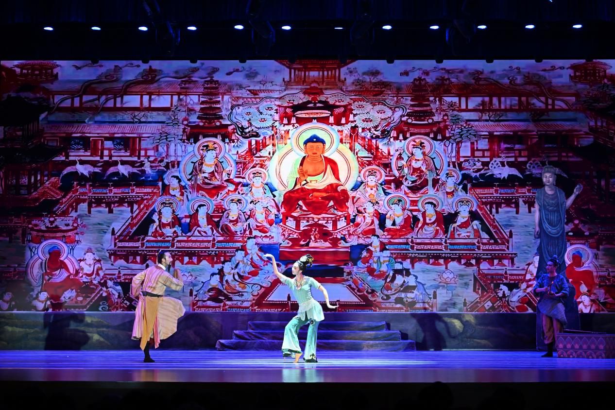 《丝路花雨》创排于1979年,被誉为“二十世纪华人舞蹈经典作品”“中国民族舞剧的典范”,演出足迹遍布全球40多个国家。此次来校演出的“2025年新版”,在保留原版剧情精髓和经典舞段的基础上,进行了大胆的艺术创新。