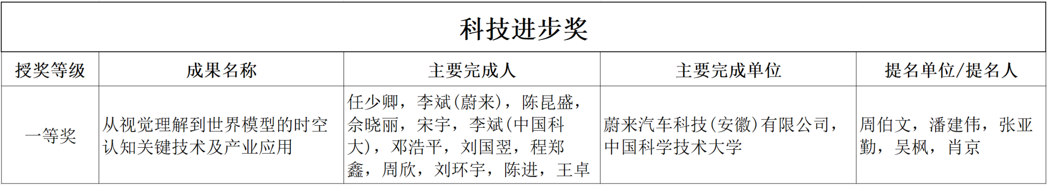 近日,中国人工智能学会公布2025年度吴文俊人工智能科学技术奖评审结果。中国科学技术大学教授任少卿、李斌作为主要完成人,联合蔚来汽车科技(安徽)有限公司共同攻关完成的科研成果“从视觉理解到世界模型的时空认知关键技术及产业应用”,凭借突出的技术创新性、场景实用性与行业引领性,荣获科技进步奖一等奖。